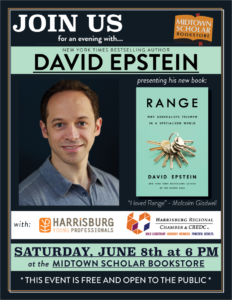 What's the most effective path to success in any domain? It's not what you think. In conjunction with the Midtown Scholar Bookstore and Harrisburg Regional Chamber & CREDC, the Harrisburg Young Professionals is pleased to welcome New York Times bestselling author David Epstein to Harrisburg as he presents his new book, Range: Why Generalists Triumph…
